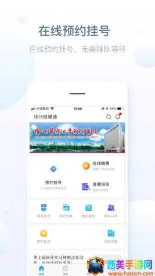徐州健康2026(徐州健康通)是为徐州本地用户打造的医疗服务软件。可手机预约挂号,在线查体检报告等。能管理家人健康档案,还有线上缴费、智能导诊等功能,方便用户就医。