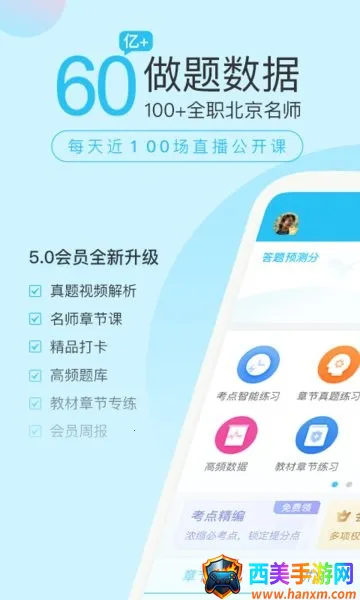 智能学习服务:利用人工智能算法实现一对一智能出题,智能评估成绩、预测考分;视频解析声情并茂,还有移动笔记本自动备案错题,方便随时随地做笔记。