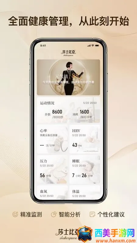 想知道莎士比亚是哪个国家的?其实有这样一款超棒的软件能帮到你!它叫莎士比亚app最新版。这是一款健康监测管理软件,搭配智能配饰使用超方便。能在线添加绑定智能配饰设备,实时监控各项身体指数健康情况,还能把监测数据可视化展示,发现健康异常能及时提醒就医。它功能超多,像添加设备、心率监测、血氧监测、AI助手解答健康问题、查看健康报告、进行人格测试等。特色也很突出,精准监测、智慧管理、数据直观全面。优势更是明显,覆盖运动、睡眠、体温、血氧等健康数据,智能分析并提供个性化建议,守护健康一目了然。而且还分享大量健康科普内容,让你轻松学习健康知识,了解莎士比亚相关知识也不在话下,有需要就赶紧下载体验吧!