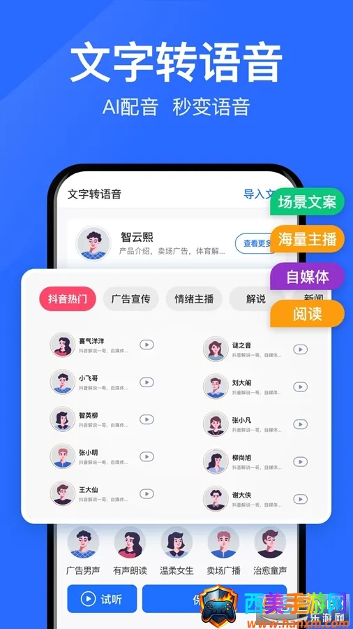 3. 功能丰富:支持语音速记、音频转文字、实时语音转文字、语音翻译、视频转文字、文案提取、广告配音等多项功能,还能进行外部录音转文字、语音笔记随时收集灵感等。