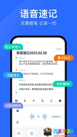 1. 多场景适用:满足会议、采访、学习等多场景下的语音速记和录音转文字需求,无论是办公还是学习记笔录都高效便捷。