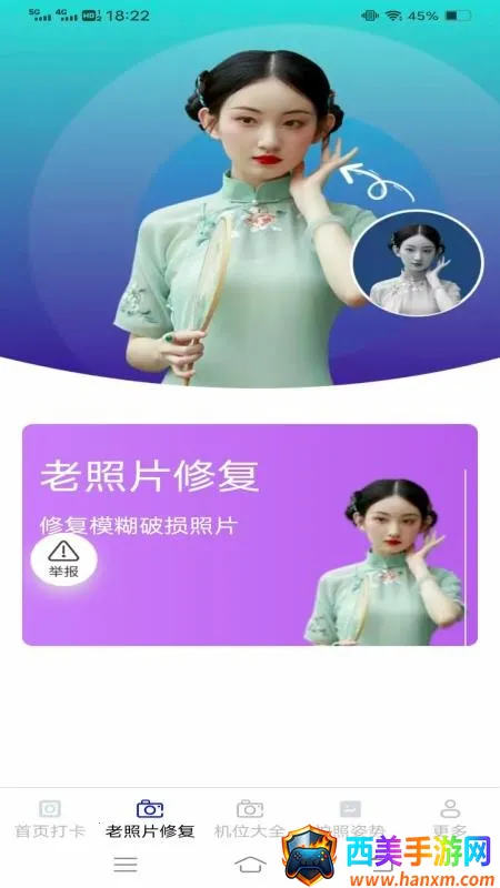 映画免费相机是一款很不错的摄影软件哦!它功能超丰富,能满足各种摄影需求。打卡记录功能可以帮你养成良好摄影习惯,让每天都有摄影乐趣。老照片修复能通过智能技术,把老旧照片修复如新,唤醒珍贵回忆。机位大全让你不出门就能知道新景点拍照机位。拍照姿势引导提供多种实用指导,助你拍出专业大片。还有背景替换功能超强大,能一键更换背景,打破场景限制,激发创意。个性滤镜库不断更新,优质滤镜随时用。趣味拍照姿势按场景分类,分享更有趣。它为摄影爱好者提供专业支持,有多样修复工具,背景替换能选海量模板。操作也不难,按照步骤就能轻松使用背景替换等功能。能帮你轻松记录生活美好瞬间,拍出令人惊艳的照片,体验创作乐趣,还是比较可靠的,可以放心试试。