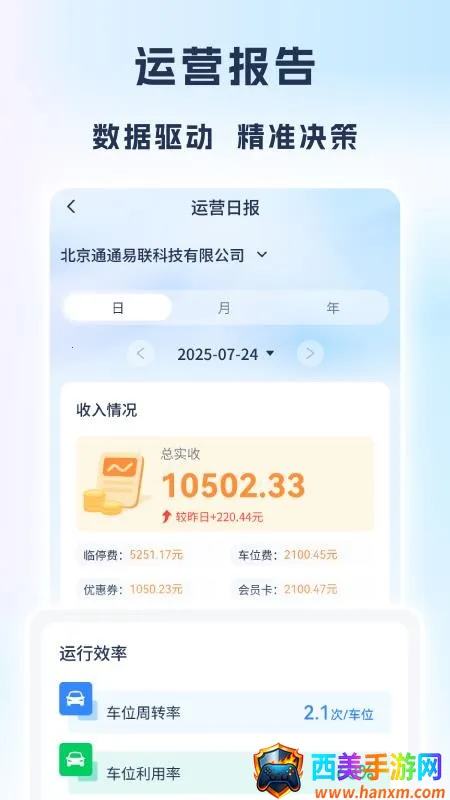 运营专家能让用户在手机端轻松管理停车场,实现智能化便捷式管理。它有全面的经营管理功能,可一站式满足工作需求。通过它能清晰直观地查看详细且精准的运营报告,工作更轻松。还能发现诸多商城好物自由选购下单。其管理模式便捷,数据精准无误,能详细了解各类数据,异常管控强大,优惠券丰厚。无论是停车场管理还是购物,都能带来出色体验,助力用户高效办公与畅快购物,一站式满足多种需求,让管理和生活都更轻松。