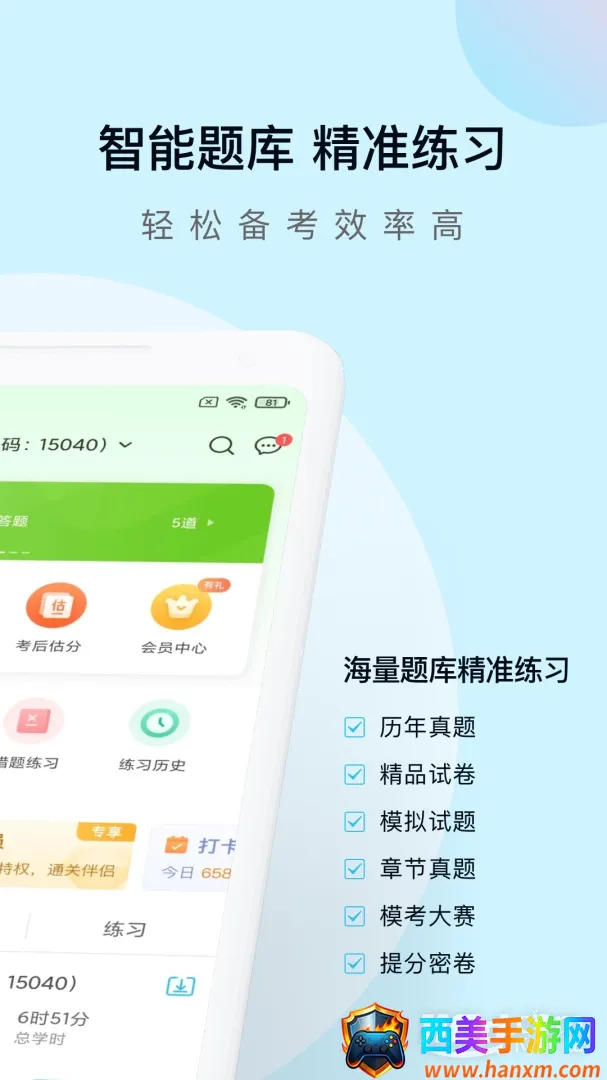 4. 智能算法更贴心:利用人工智能算法实现一对一智能出题,还能分析模拟考试题目,科学助力学习,是自考提分的好帮手。