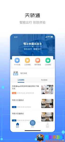 如果你想知道天骄通公交学生卡怎么充值,天骄通APP能帮到你。这是一款为鄂尔多斯市民打造的出行服务软件。它功能超多,能实时查询公交,让你清楚车的位置和到站时间。支持二维码乘车,靠近扫码机就能自动扣费,余额不足还能自动跳转充值页面。线上充值超方便,通过银联支付等主流渠道,为实体市民卡空中充值,记录实时同步,资金到账即时可查,不用再去线下网点排队。还能整合水电气暖等生活缴费项目,账单自动推送提醒。接入本地商超等商户优惠信息,线上下单还能享受专属折扣。在市民卡板块,点击充值选金额和支付方式,确认后数据通过NFC或蓝牙传输至实体卡就能完成充值啦,轻松解决公交学生卡充值问题,让出行和生活都更便捷。