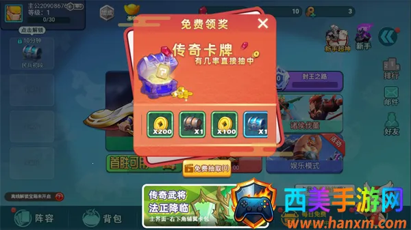 2、每日免费装备卡包,最多2次。喜欢关卡玩法的主公们,一定不能错过哟。
