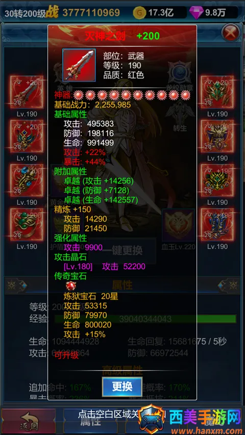 5、点击锻造,玩家们可对装备进行升级、强化、镶嵌宝石、晶石等操作;