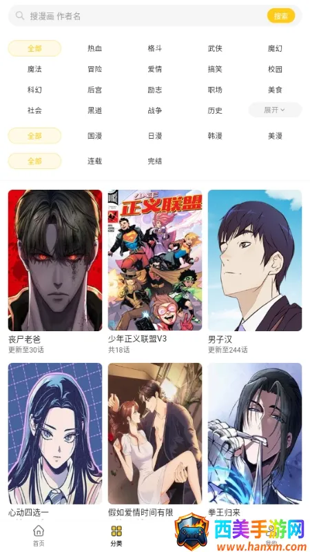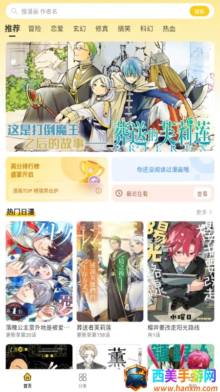 4. 设有推荐热门榜、分类专区,每个专区不断更新,方便挑选漫画。进入免费阅读页面,可享受全彩高清流畅无广告的沉浸式阅读体验。还支持离线缓存功能,操作简单,随时能查看已缓存漫画。