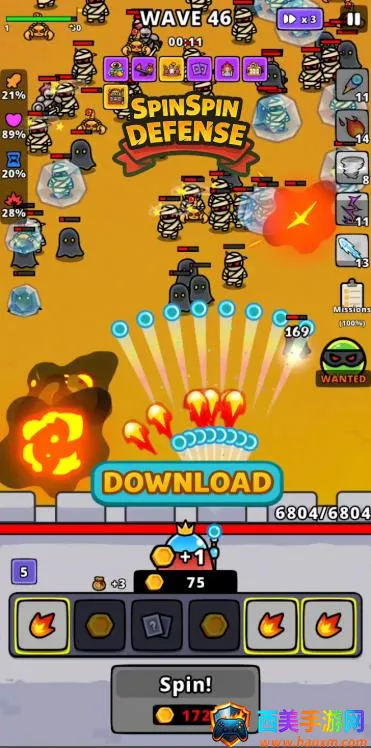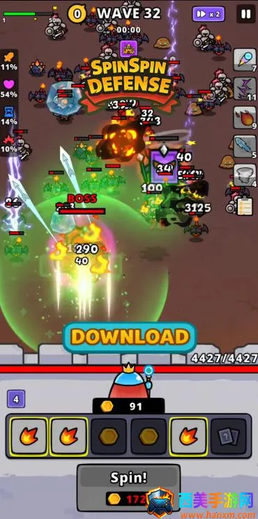 转转防御是一款创新手游。它以史莱姆守护王国为背景,将转盘随机抉择肉鸽元素与塔防阵地防御深度融合。在这里,你化身史莱姆之王,转动转盘拾取技能击败魔物。每一次转动都是运气与策略的博弈,每一局都截然不同。游戏画风明亮卡通,技能特效炫酷。其特色在于肉鸽元素贯穿全局,关卡布局和技能组合都无固定套路,重复挑战也有全新体验。而且塔防基础玩法与元素相克体系结合,提升了策略深度。在守护史莱姆王国的过程中,能让你充分感受到割草式爽感与战术博弈的双重乐趣,是一款值得一玩的游戏。