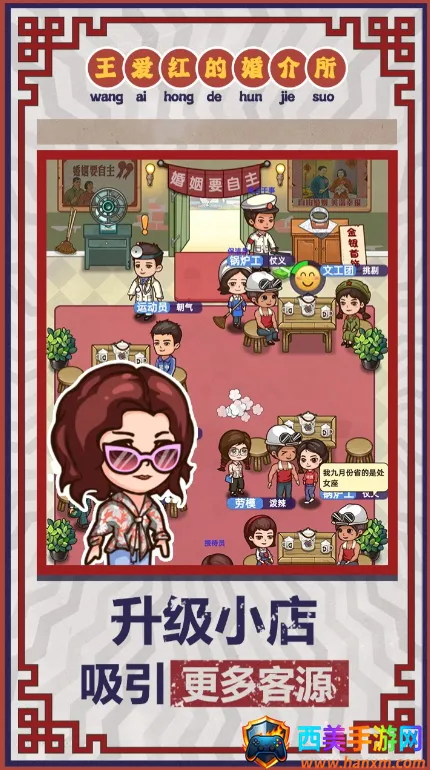 相亲模拟器是一款超有趣的模拟经营游戏。在这里,你将扮演婚介所老板,帮助他人相亲并赚取营收,同时也为自己寻觅良缘。游戏有着怀旧画风,从80年代到21世纪,带你体验不同年代的相亲故事。