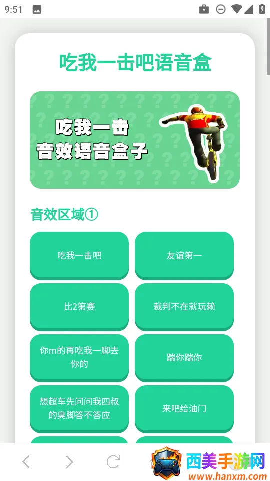 吃我一击语音盒2025官方正版是有趣的语音软件,有海量语音资源,涵盖多种类型,免费播放分享。具备延迟播放等功能,分类清晰、更新及时。语音质量高、操作简单,适用于多种场景,能增添聊天乐趣。