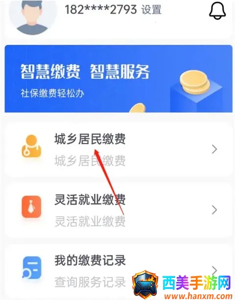 2、然后在登录之后,从“我的”中找到“城乡居民缴费”选项。