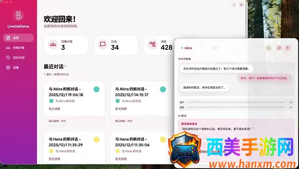 LiveGG能让用户体验真实的恋爱过程。其对话内容丰富,回复及时,还能自动存档聊天记录。用户可自由发挥交流,闲聊有趣,对方表达观点清晰不生硬。代入感极强,回答方式和口吻可按喜好设置,能自导自演浪漫邂逅。不过使用时尽量选安静环境,离线只能识别关键词,深层次对话需保持网络顺畅。总体而言,它为用户营造了独特的社交体验,能满足人们对模拟恋爱交流的需求,是一款值得尝试的软件,能给用户带来别样的互动乐趣,让你沉浸在独特的数字社交之中。