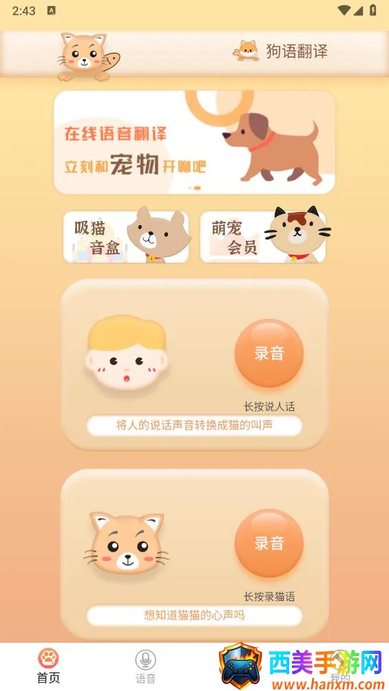 1. 双向语言翻译超便捷:支持语音或文字输入人语转猫语,还能录制猫语转人语,智能算法精准转换,轻松理解猫咪需求与情绪,实现人与猫的顺畅交流。