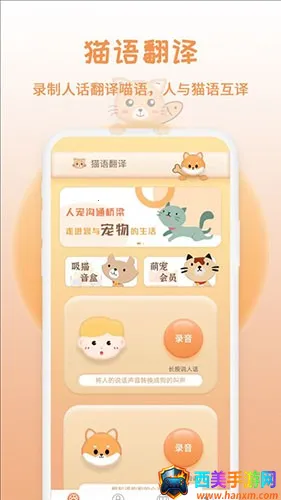 2. 海量猫咪音频库超丰富:提供超16种高品质猫咪呼唤声,涵盖多样场景,一键播放吸引猫咪。还能自定义录制,生成专属猫语词典,记录独特表达方式。