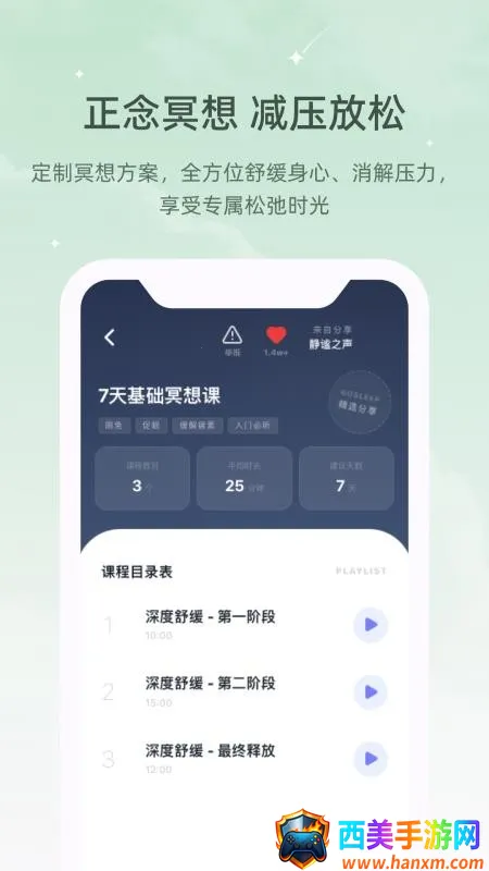 这款软件对失眠星人和压力党超实用。它能帮你告别不健康睡眠状态,调节身心健康。适配不同人群,迅速解压助眠。有专业冥想引导与声音疗愈,从根源调整。海量助眠音乐可选,还能追踪睡眠数据,保存喜欢音效。睡前打开杜绝干扰,自动推荐音效,生成专属的,查看清晰睡眠数据。用后睡眠状态极大缓解,还有减压课程,真心推荐给受失眠和压力困扰的朋友。