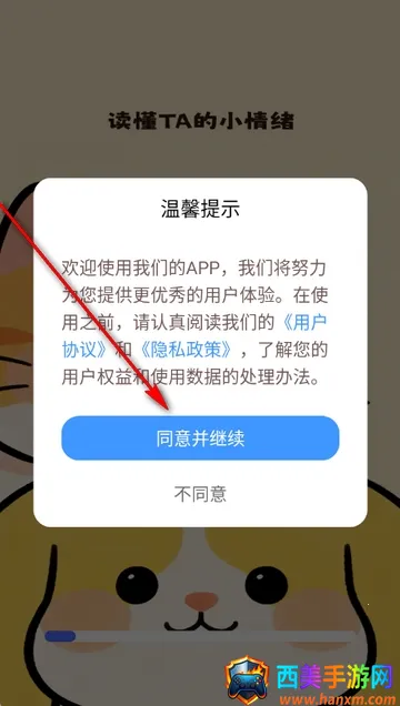 1、打开猫狗翻译工具app,点击同意隐私政策