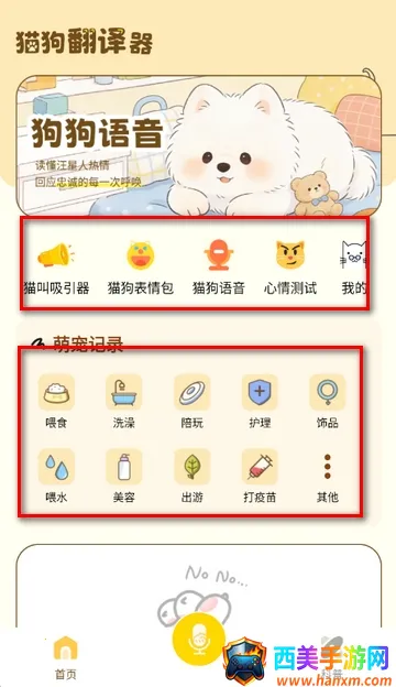 2、进入软件首页,可使用各种各种功能逗毛孩子