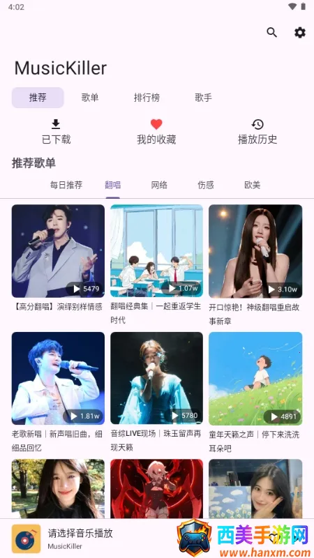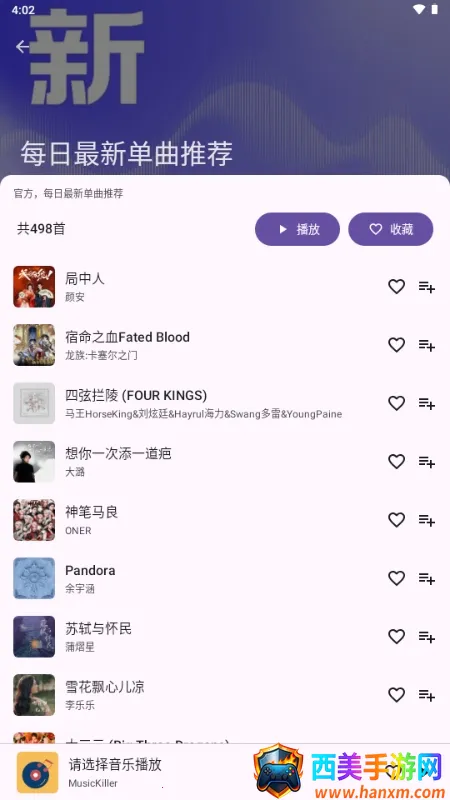 MusicKiller是一款非常出色的免费音乐应用。它能让你无需会员,没有广告,就能畅享无损音质的纯净天籁。这里提供了大量优质好歌,可随时搜索喜欢歌手的所有作品,还支持创建个性化播放列表和收藏喜爱歌曲,轻松管理私人音乐库。具备便捷分享功能,能一键分享给好友。其界面简洁易用,首次使用的用户也能迅速上手。还支持无缝播放多种模式,满足不同场景需求,更有离线播放功能,没网络时也能听已下载的音乐。多种音质下载令人满意,音乐库庞大,全网大部分曲库都在这,热歌新歌随时想听就听,体验感极好。