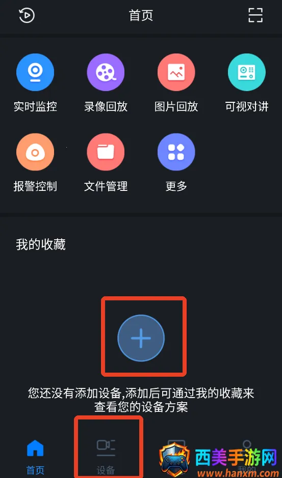 2、来到首页点击下方【+】号添加设备,成功添加后可以在【我的收藏】查看自己的设备方案,或者直接点击下放第二个【设备】也可以。