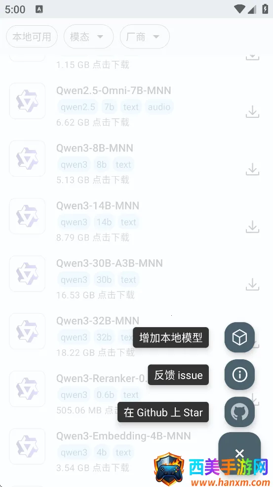 1.根据需求选择AI模型MNN Chat软件