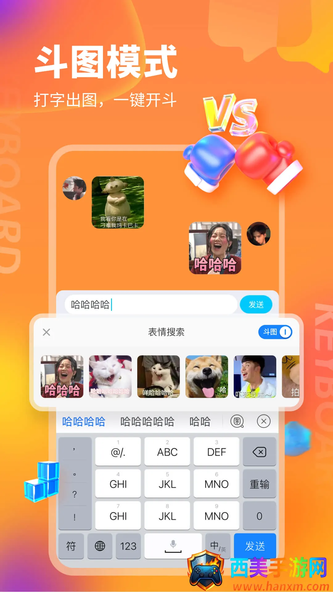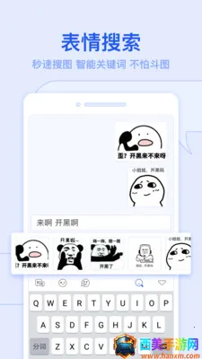 3. 智能有趣:具备智能联想等功能,输入常用词汇以及表情快速,还有秒速搜图、智能关键词,让斗图更有趣。