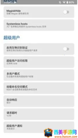 Root权限管理:安装后默认具备ROOT权限,可通过管理器轻松管理,还提供特定应用程序的ROOT权限隐藏功能,避免应用因检测到ROOT权限而崩溃。