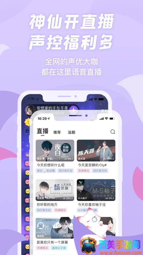 3. 声优互动精彩:全网众多声优大咖在这里语音直播,像阿杰、夏磊、吴磊、柯暮卿等,能和喜欢的主播连麦互动,还有暖心主播陪聊天、哄睡、唱歌。
