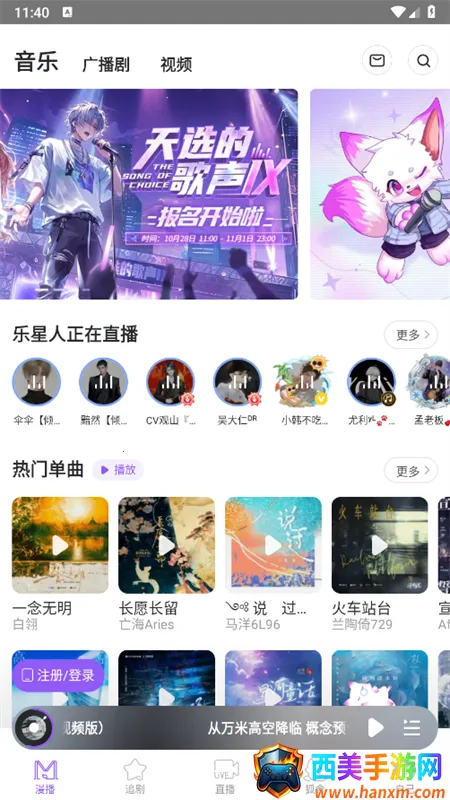 漫播是一款非常实用的二次元听播软件,也是声音爱好者的聚集地,还是国内可视化漫播剧开拓者。这里有精品漫播剧,让你高清听过瘾,海量人气作品改编,各种资源应有尽有。除此之外,漫播app官方最新版打破传统收听模式,全新的漫播剧待你解锁。在这款软件中有很多声优大咖在这里语音直播,你可以和自己喜欢的主播在这里直播互动哦。如果你是一个二次元爱好者或者声音爱好者,那么漫播绝对是一个值得尝试的软件。它不仅提供了丰富的漫播剧和有声书资源,还为用户提供了一个互动交流的平台。在这里,你可以和其他用户一起分享自己的喜好,还可以和声优大咖们进行直播互动,感受他们的魅力。如果你还没有尝试过漫播,那么不妨下载体验一下,相信你一定会爱上它的。