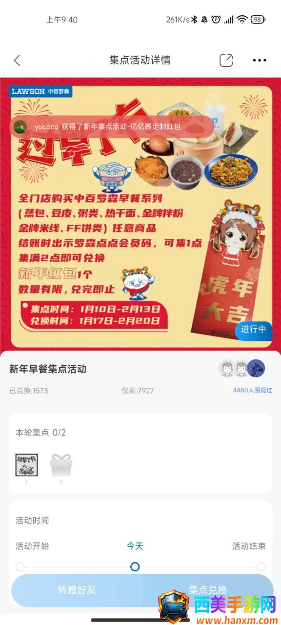 罗森点点官方正版优势显著。它能为用户及时提供最新商品优惠信息,让你购物快人一步。消费积分可轻松累积,还能在积分商城兑换心仪商品礼券。新店铺开店信息、新商品信息及各种火热活动信息,第一时间推送通知。会员专享超低折扣,最低可达5.9折。积分热兑专栏方便用户快速找到热门兑换商品。更有丰富点点活动,如欢乐扭蛋机,邀请好友还能轻松获取红包。让你购物便捷又实惠,尽享专属福利。