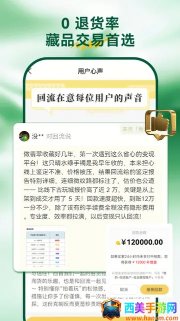 回流网2026最新版本是珠宝玉翠闲置交易平台,采用消费者到企业回收模式。有个性化服务、售后无忧等特色,支持一键估值。功能包括搜索购买、海量甄选、丰富种类展示等,亮点有权威鉴定、教程清晰、订单明细可查等。