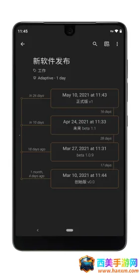 这款软件拥有独特的时间线记录方法,能让我们高效且直观地管理日常生活与时间。它可以免费使用所有功能,还没有广告干扰。软件能对事件分类管理,方便快速查找,每个事件下方可备注提醒。拥有不同颜色主题方案,夜晚能用深色模式,能在桌面添加小部件,不打开软件就能记录。在事件里添加提醒设置,到达时间会响铃提醒。搜索事件可按名称或日期范围快速查找,还能设置提前提醒。而且无需联网就能使用,随时随地可记录。对于有拖延症的朋友来说,它特别适合,能有效提升生活品质和工作效率,值得下载使用。