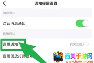 接着,在列表中找到并点击【直播通知】。