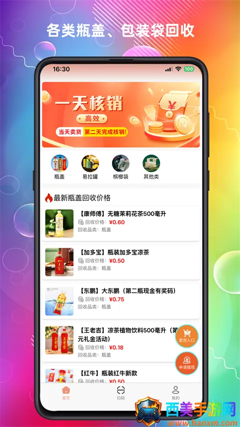 云上回收app是一款专注于瓶盖和包装袋回收的扫码回收平台。它非常正规合法且安全。其功能强大,支持超多品类的瓶盖回收,像常见的康师傅、红牛、脉动、东鹏等品牌的瓶盖,还有各类包装袋都能轻松回收。回收成功可获积分用来兑换奖励,让你在参与环保时收获回报。使用操作简单,一键扫码就能完成回收。软件亮点众多,采用AI图像识别技术,能自动区分50种可回收物品种类,精准匹配回收渠道;实时对接全国2000回收站点数据,确保报价与线下同步更新。从扫码估价到上门回收仅需3步,最快2小时完成交易流程。除现金收益,还能累积环保积分兑换生活用品。有智能定位可快速找附近回收点并支持地图导航,还有环保积分、数据追踪、社区互动、成就系统以及环保知识学习等功能,让回收更便捷、有趣,助力你成为环保达人,放心使用。