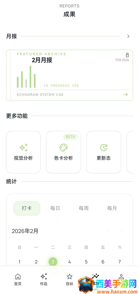 3. 记录绘画成长:自动生成绘画时长统计和成长记录,还有月度和年度总结图,让用户直观看到自己的进步轨迹。
