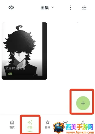 1、登录账号之后,点击下方第二个【作品】,再点击右下角的【+】号。