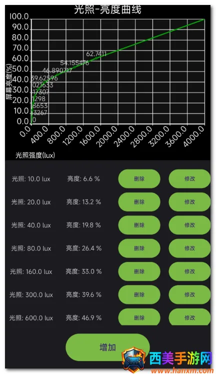 4. 有亮度-光照曲线设置界面,可通过增减修改光照-亮度对应点来调整亮度-光照曲线,满足个性化需求。