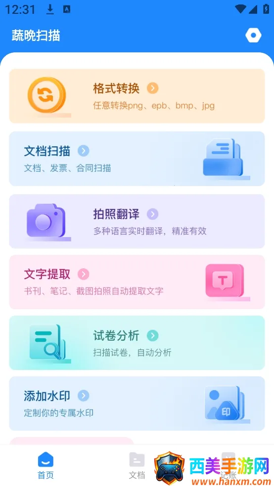 2、进入首页可以看到丰富的功能,点击【文档扫描】进入。