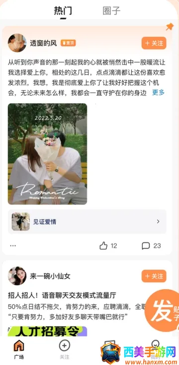 3、进入软件广场热门页面,可查看大家发布的热门动态等