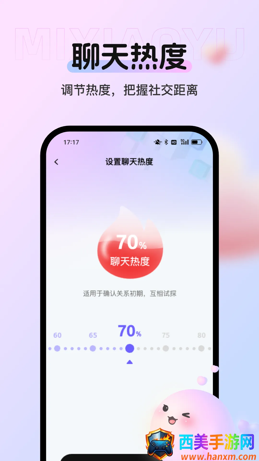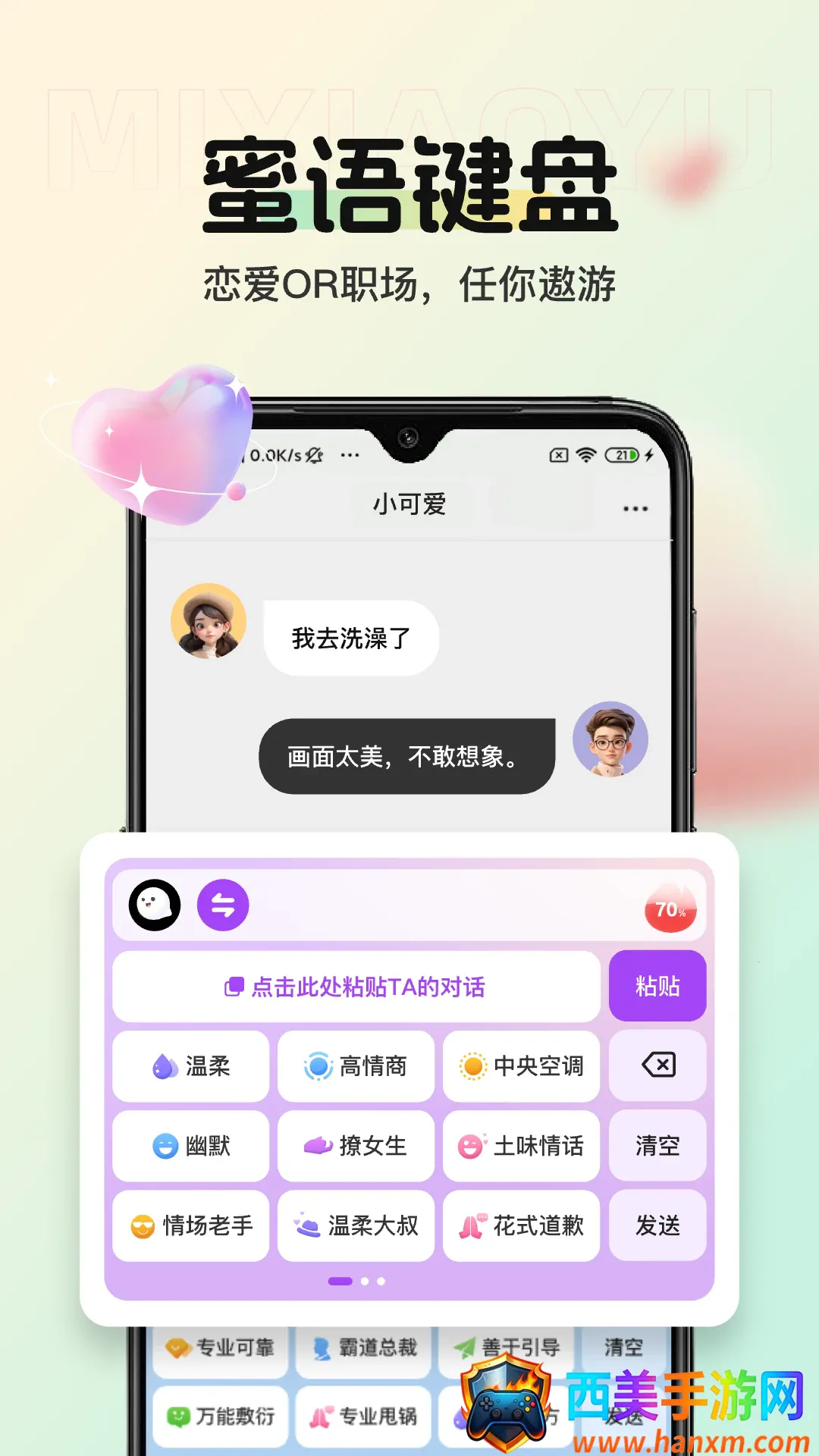 4. 有专为聊天设计的蜜语键盘,可轻松回复,简化操作流程;还有聊天标签自定义功能,增添聊天趣味;能调控聊天热度,把握聊天节奏。