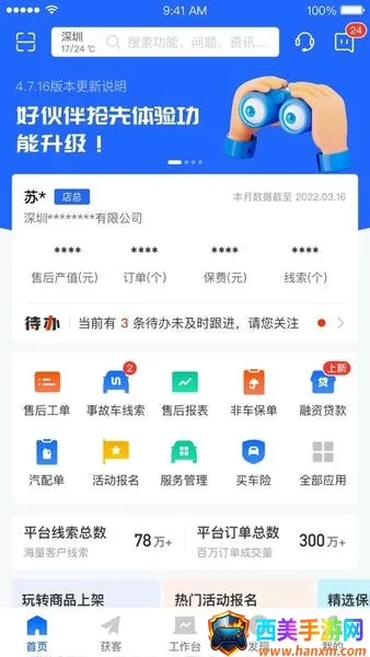 平安好伙伴2025最新版本是中国平安为车商合作伙伴定制的智能办公软件。融合理赔查询、一键续保、新车出单等功能,支持手机电脑同步数据,操作简单易上手,还新增经代一键询价等功能,助车商高效管理店铺。
