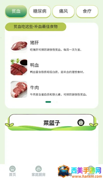 4、点击健康时刻,这里可以知道各种菜是补什么的、什么是要少吃的