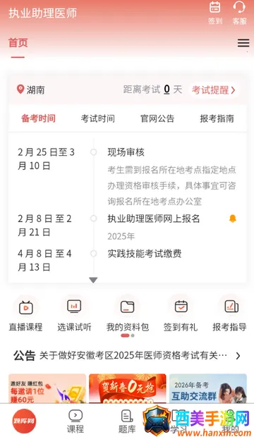 如果你想了解执业助理医师考试报名条件,同时又在备考执业助理医师,那这款备考APP绝对适合你!它专为备考学员精心打造,涵盖精选题库、强师讲解、章节精讲等多个模块,能全方位满足你的备考需求。2026年升级题库贴合最新考试大纲,精选考题补充考点,让你紧跟考试趋势。章节考点精讲搭配对应练习题及视频讲解,学练结合提升备考效果。支持随时随地学习,还能离线做题,适配碎片化备考场景。不管你是基础薄弱想从基础抓起,还是处于冲刺阶段想查漏补缺,亦或是容易忽略易错点想针对性突破,它都能帮到你。有了它,你可以轻松查询考试时间、备考时间等,点击课程能查看每日学习进度,点击题库即可开始题目练习,登录账号还能保留学习记录。切换考试城市也很简单,点击题库左上角,确认授权位置后选择你要考试的省份就行。有了这款APP,备考省时省力,高效通关不是梦!