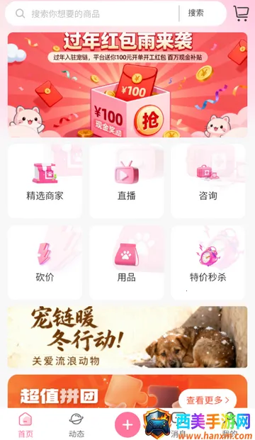 2、进入软件首页,可查看你需要购买宠物的商品等