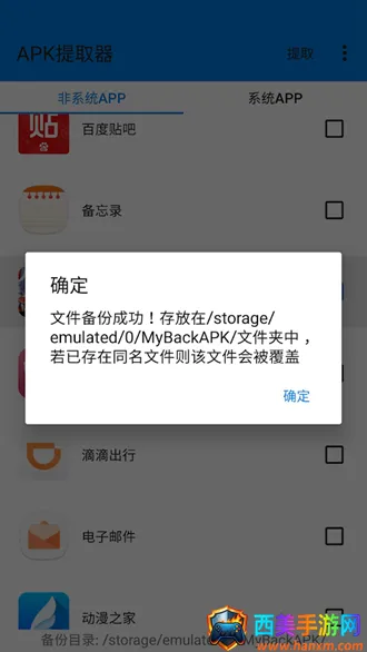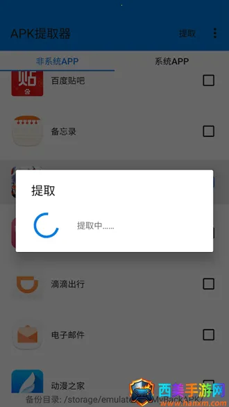 2. 进入主界面后,软件自动加载手机中全部应用列表,涵盖“我的应用”、“系统应用”以及“APK文件夹”等分类,便于快速定位目标: