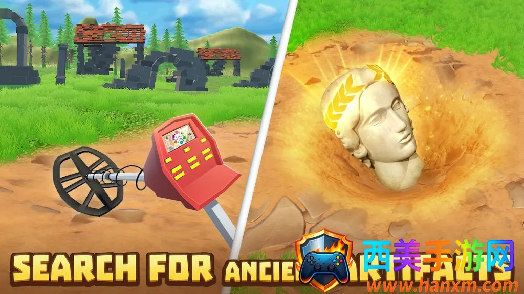 3. 升级装备探索世界:用收入购买更高级探测器,探索充满树木、草地、山脉和遗迹的开放世界,享受自由探索与真实考古氛围。