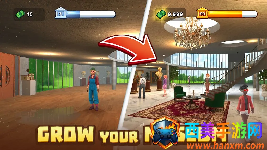 2. 考古与博物馆经营:实践考古,将发现的物品带到博物馆展出,提升等级吸引更多参观者,等级越高收入越高。