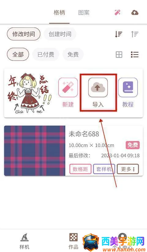 3、点击“作品”,选择“导入”。