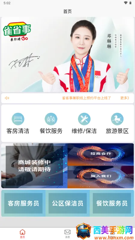 雀省事 2026 官方最新版本是专注服务外包与灵活用工的综合性平台,面向酒店景区等商户,提供客房清洁等岗位线上预约派单,为灵活就业人员打造便捷接单结算通道,集下单接单结算一站式服务。