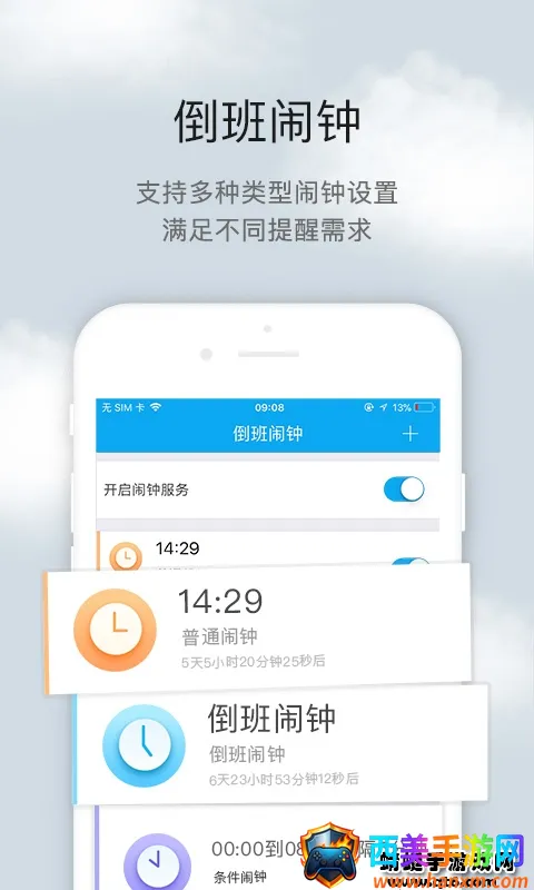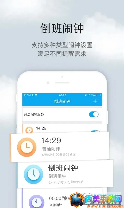 3. 多种闹钟选择:可满足不同工作需求,普通闹钟、倒班闹钟、条件闹钟随心设置,提醒随心所欲。